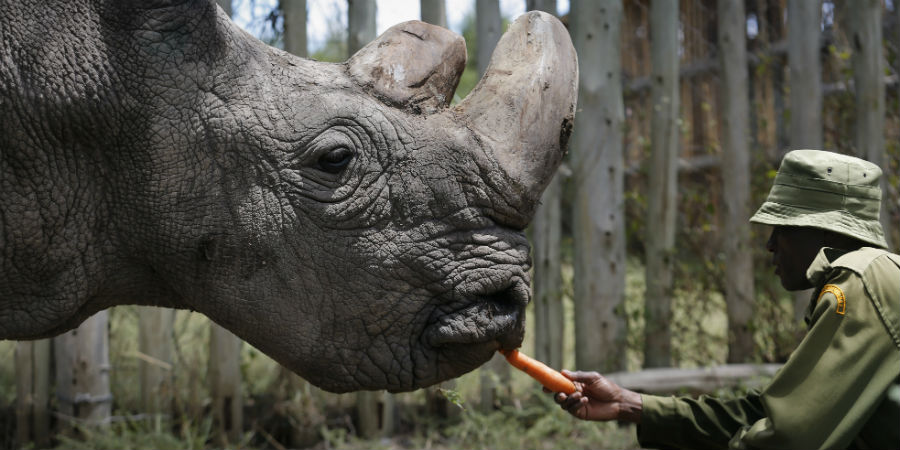 De 45-jarige Sudan – ook wel de gentle giant genoemd – was de laatste mannelijke witte neushoorn die nog leefde. Leefde inderdaad, want afgelopen maandag hebben dierenartsen het dier moeten inslapen in het Ol Pejeta-natuurreservaat in Kenia. Sudan leed te veel aan leeftijd gerelateerde aandoeningen en infecties (hij kon niet meer op zijn benen staan).