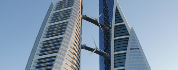Het was zo’n mooi, duurzaam idee, het 150 miljoen kostende Bahrein Wold Trade Center. Twee wolkenkrabbers, met daartussenin drie bruggen waar windturbines aan hangen. En door de gebouwen als een soort trechter neer te zetten in de gebruikelijke windrichting, hoopten de ontwerpers op een maximaal rendement.
