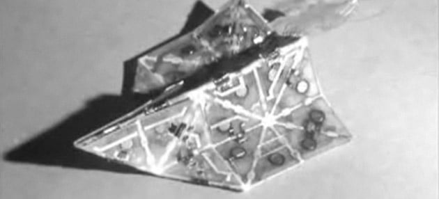Deze ‘gewrichten’ kregen een bepaalde vorm ingeprent door ze in de gewenste stand te klemmen bij een temperatuur van 420 graden Celsius. Vervolgens werd het vel afgekoeld en platgevouwen. Resultaat: een origamivel dat van zichzelf een bootje of vliegtuigje vouwt als je een stroom door de naden tussen de driehoekjes laat lopen: