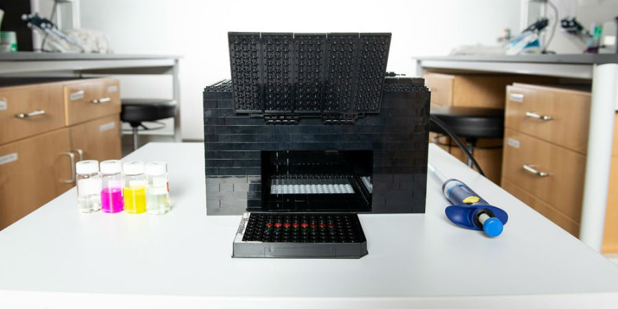 Dat is ze gelukt. De onderzoekers deden een beroep op hun innerlijke MacGyver en bouwden een apparaat bestaande uit een iPhone, een uv-lamp, een multititerplaat met 96 welletjes en… een paar LEGO-steentjes.