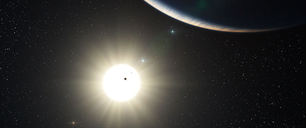 Een team van astronomen heeft met behulp van ruimtetelescoop Kepler zes planeten gevonden die een baan rond dezelfde ster beschrijven.