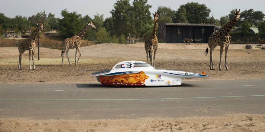 En omdat de race de deelnemers dwars door het Zuid-Afrikaanse landschap voert, werd de nieuwste versie van de zonneauto geheel in stijl in Safaripark Beekse Bergen gepresenteerd.