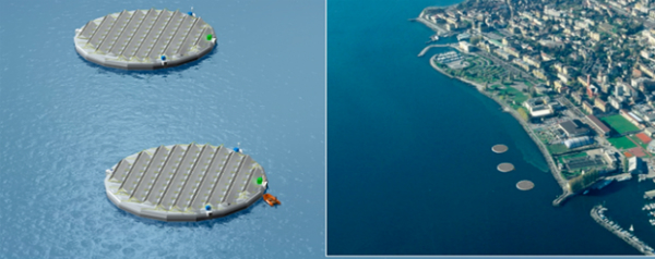 Een goed idee heb je zelden alleen. De Zwitserse bedrijven Viteos en Nolaris komen namelijk nu met drijvende zonnefarms. Deze hebben een middellijn van 25 meter en zijn uitgerust met zogenoemde concentrated solar power (CSP), waarbij het zonlicht wordt geconcentreerd en gebruikt om stoom te produceren. Die gaat via een pijpleiding naar het vaste land, waar er in een krachtcentrale turbines mee worden aangedreven die op hun beurt elektriciteit produceren.