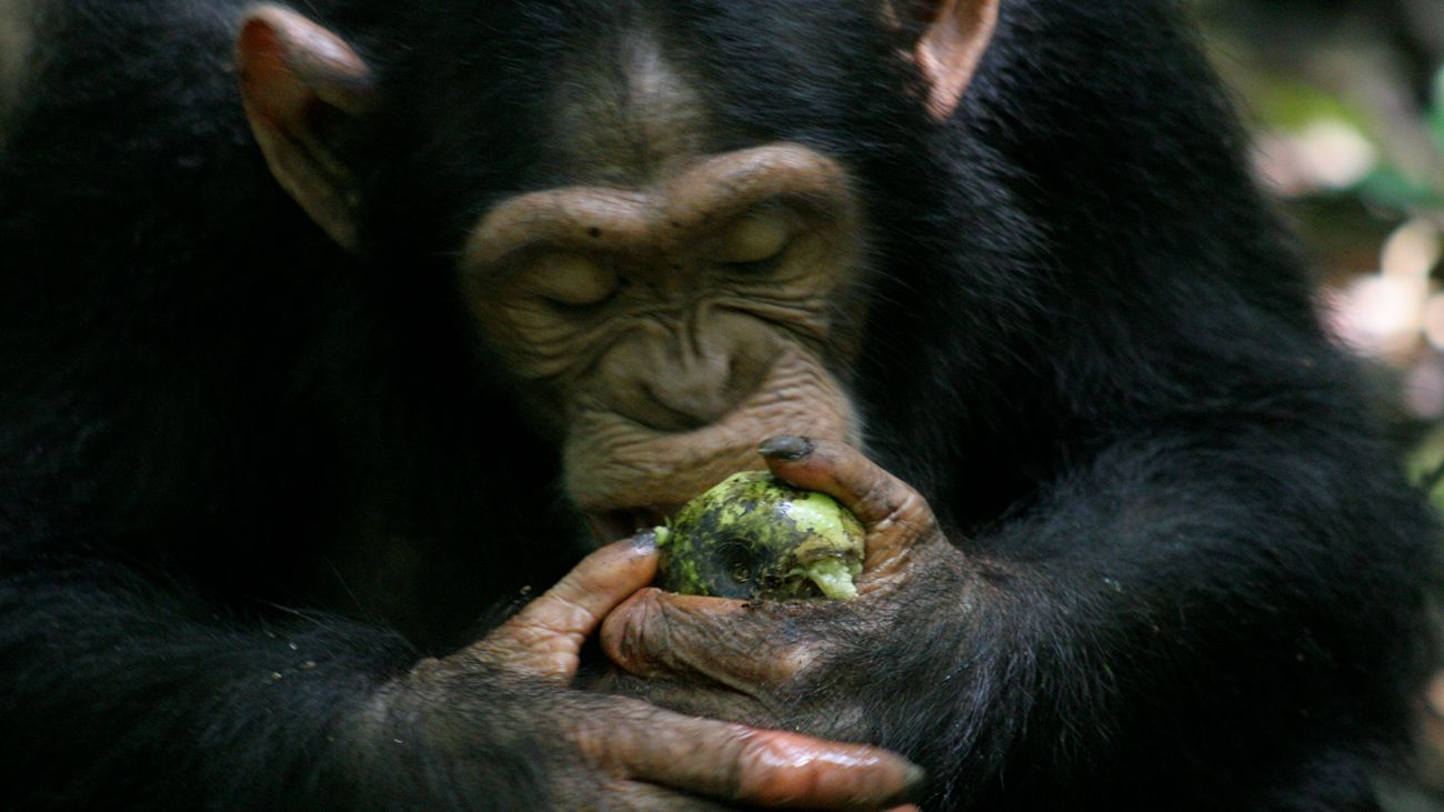 chimpansee eet overrijp fruit met alcohol