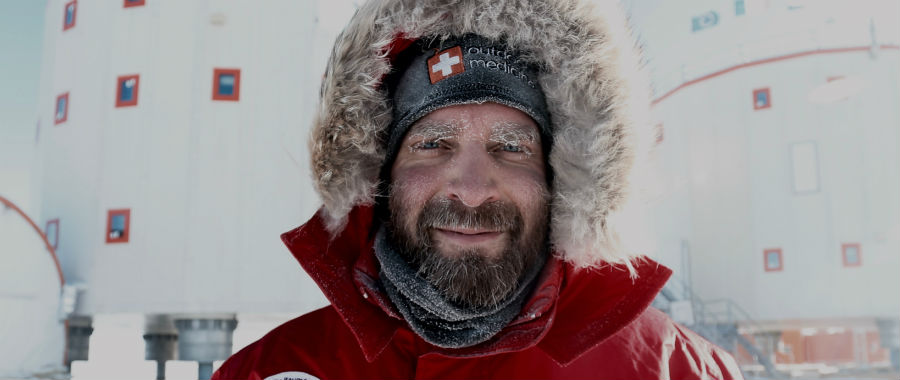 “Mooi? Nee. Bijzonder, dat wel. We zitten op een glooiende berg. Niets dan sneeuw om ons heen. Je kunt schitterend sterrenkijken, want bewolking komt hier nauwelijks voor. Met 5 centimeter neerslag per jaar is dit gebied droger dan de Sahara. Maar je bent heel beperkt in je bewegingen. Vandaag was het -63 graden, gevoelstemperatuur -82. Als je uitademt, krijg je waterdamp, waardoor een sjaal of mondbedekking meteen bevriest. Die moet je ronddraaien, maar dan heb je ijs in je nek. Even een skibril wisselen, omdat de binnenkant beslaat? Dan bevriezen je oogleden. Daar is echt maar een paar seconden voor nodig.”