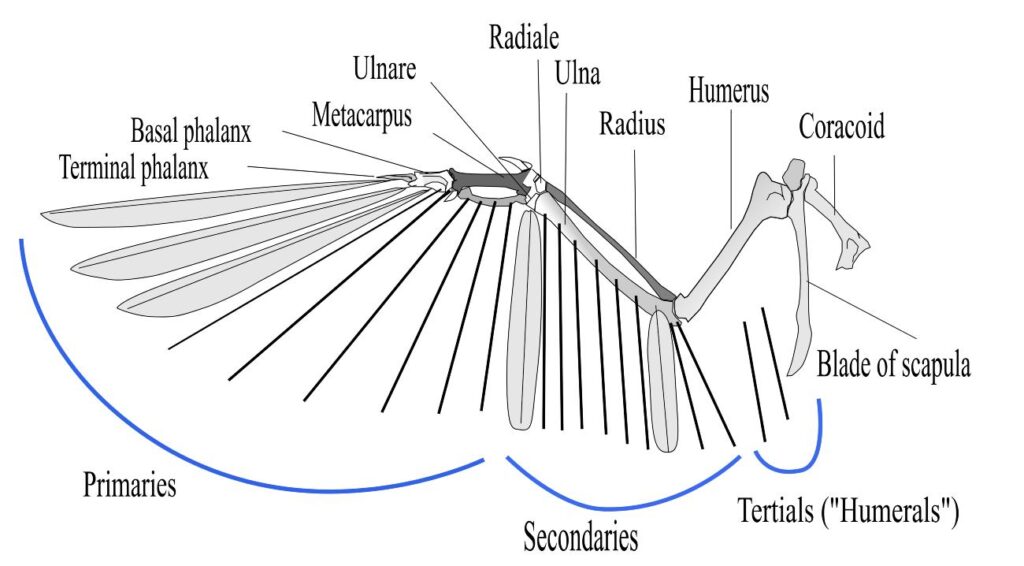“In vergelijking met de meeste levende vogels, had Archaeopteryx een erg lang bovenarmbot”, zegt O’Connor. “En als je probeert te vliegen, creëert zo’n lange bovenarm een gat tussen de primaire en secundaire vleugelveren en de rest van je lichaam. Als lucht door dat gat beweegt, verstoort dat de liftkracht die je genereert, en kun je niet vliegen.” Moderne vogels hebben daar een oplossing voor: kortere bovenarmen en een set tertiaire veren om het gat op te vullen.