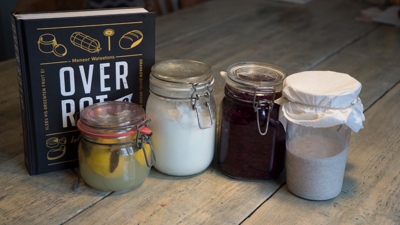 Om zelf te ervaren hoe lekker ‘rot’ kan smaken, heb ik mijn keuken de afgelopen weken langzaam omgetoverd tot een klein fermentatielaboratorium. Overal staan potten waarin eten ligt te rotten. Mijn ontdekking: dit is de meest luie manier om de lekkerste dingen te maken. Je hebt alleen wat geduld nodig terwijl miljarden microscopisch kleine werkers het complexe culinaire werk voor je doen.
