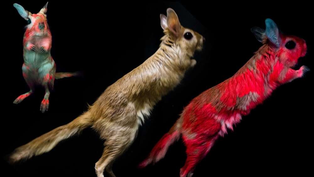 De steeds groter wordende groep van fluorescerende dieren heeft er een nieuw lid bij: de springhaas, een knaagdier dat in het holst van de nacht rondhuppelt.