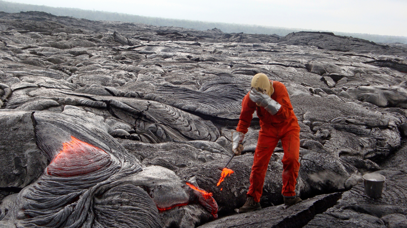 Vele lagen katoen, een helm, speciale handschoenen en een gasmasker. Modieus was de outfit van de Amerikaanse geoloog en vulkanoloog Jessica Ball niet te noemen, maar bescherming bood hij haar wel degelijk. Ball behoort tot de onderzoekers die de grote uitbarsting van de vulkaan Kīlauea op het eiland Hawaii in 2018 bestudeerden. Op de top van deze 1,2 kilometer hoge vulkaan ligt een grote komvormige krater, een caldeira. Vanuit deze krater lopen zogenoemde riftzones, zwakke plekken in de flank van een vulkaan waar lava uit kan stromen. Tijdens de uitbarsting in 2018 gebeurde dit volop: uit de verzwakte zones spoten heuse lavafonteinen omhoog.