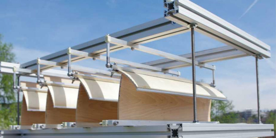 Door die wisselwerking tussen koude en natte, en warme en droge lucht, leent het ‘schubmechanisme’ zich goed voor een automatisch zonweringssysteem. Op basis van de schubben van de dennenappel maakte het team schubben (planken) uit twee verschillende lagen hout: spar (Picea abies) en beuk (Fagus sylvatica). Die lagen werden zo aan elkaar bevestigd, dat de houtnerven loodrecht op elkaar staan. Zo kunnen de planken, net als de schubben van een dennenappel, reageren op luchtvochtigheid.