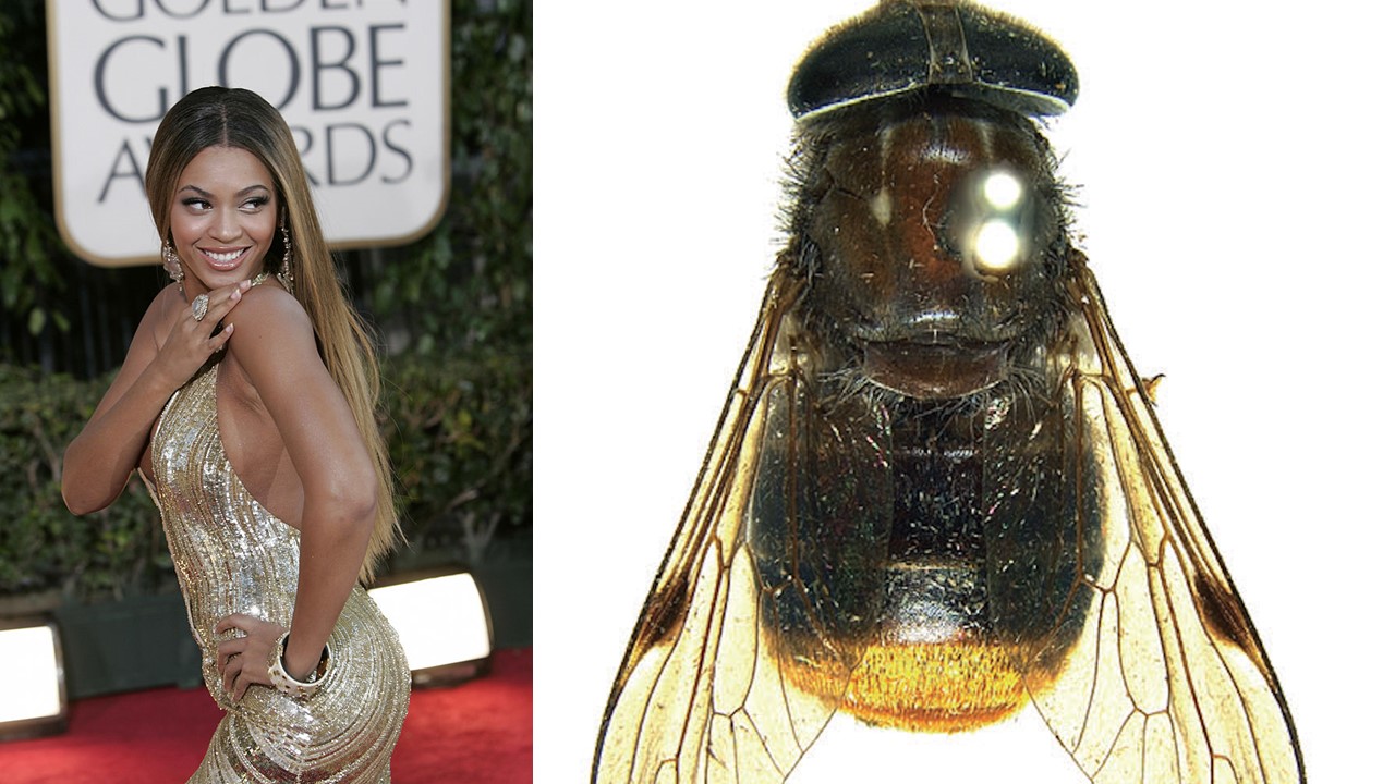 Waarom een paardenvlieg naar een van de beroemdste zangeressen in de wereld is vernoemd? Goeie vraag. Wij snapten hem ook niet meteen, maar volgens de naamgever – de Australische entomoloog Bryan Lessard (daar heb je hem weer) – deed het goudkleurige achterwerk van de vlieg denken aan Queen B. “Het waren de unieke dichte gouden haren op het achterlijf van de vlieg die me ertoe brachten om deze vlieg een naam te geven ter ere van de legendarische zangeres, artieste en actrice Beyoncé. Bovendien gaf het me de kans om de leuke kant van taxonomie te demonstreren – het benoemen van soorten.” Hoe de zangeres het zelf vindt dat een Australische daas naar haar is vernoemd, is niet bekend.