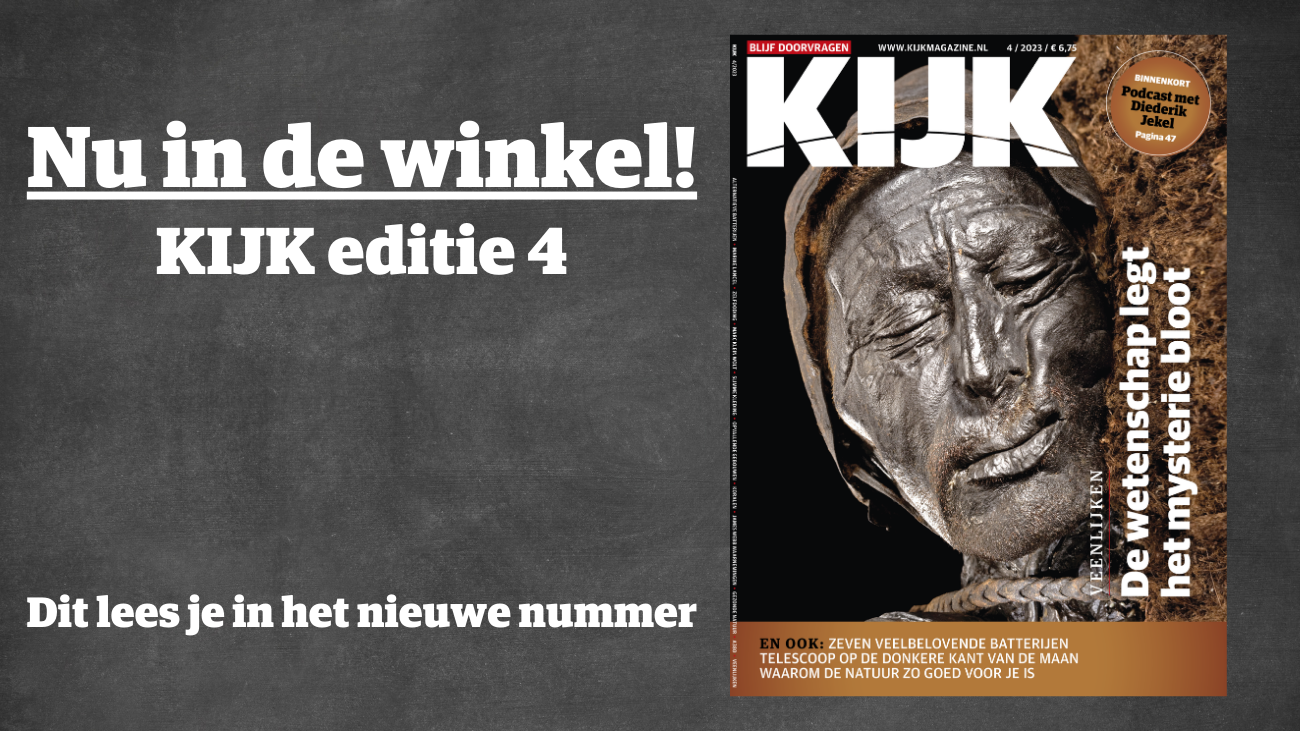 Vanaf vandaag ligt de vierde KIJK-editie van 2023 in de winkels. Met op de cover: de wetenschap legt het mysterie van veenlijken bloot.
