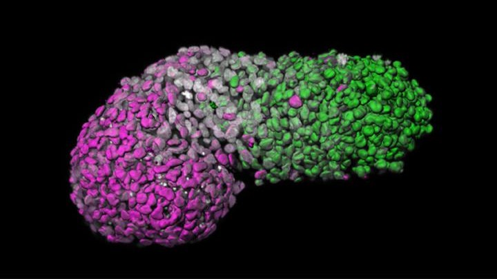 Het gekweekte embryomodel brengt daar hopelijk verandering in. Het bestaat uit menselijke embryonale stamcellen die zich driedimensionaal hebben geordend en gevormd tot een zogenoemde gastruloïde. De gekweekte gastruloïden – die de embryonale leeftijd van 18 tot 21 dagen hebben – hebben de genen die betrokken zijn bij de ontwikkeling van onder andere spieren en botten op de juiste plek zitten. Ze ontwikkelden echter geen hersencellen en zijn daarom niet levensvatbaar.