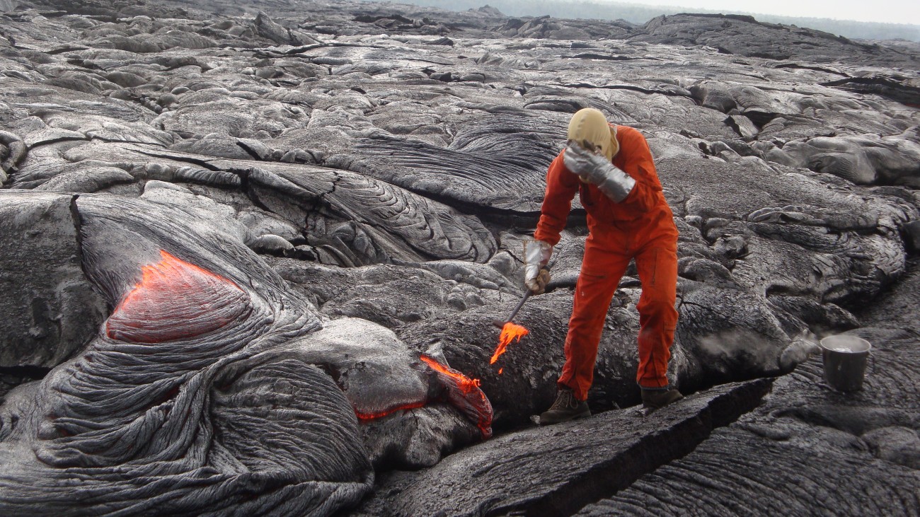Vele lagen katoen, een helm, speciale handschoenen en een gasmasker. Modieus was de outfit van de Amerikaanse geoloog en vulkanoloog Jessica Ball niet te noemen, maar bescherming bood hij haar wel degelijk. Ball behoort tot de onderzoekers die de grote uitbarsting van de vulkaan Kīlauea op het eiland Hawaii in 2018 bestudeerden. Op de top van deze 1,2 kilometer hoge vulkaan ligt een grote komvormige krater, een caldeira. Vanuit deze krater lopen zogenoemde riftzones, zwakke plekken in de flank van een vulkaan waar lava uit kan stromen. Tijdens de uitbarsting in 2018 gebeurde dit volop: uit de verzwakte zones spoten heuse lavafonteinen omhoog.