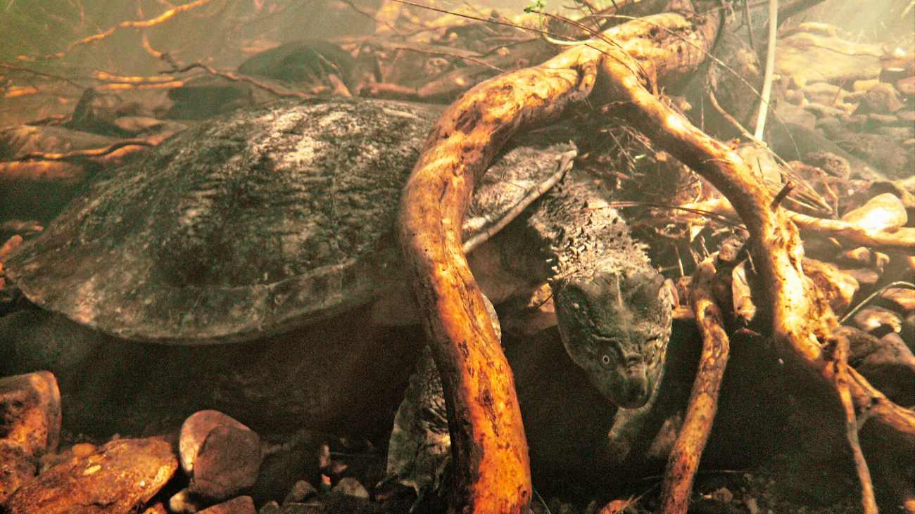 Daarmee komen we bij zijn bijzondere ademhalingssysteem. Deze schildpad haalt namelijk met name adem door zijn kont, of beter gezegd: zijn cloaca. Dat is een multifunctionele lichaamsopening die het dier verder gebruikt voor de voortplanting, om eitjes af te zetten en om afvalstoffen te lozen.