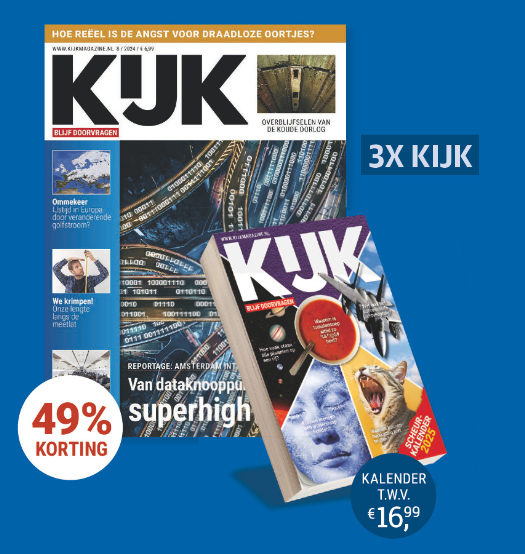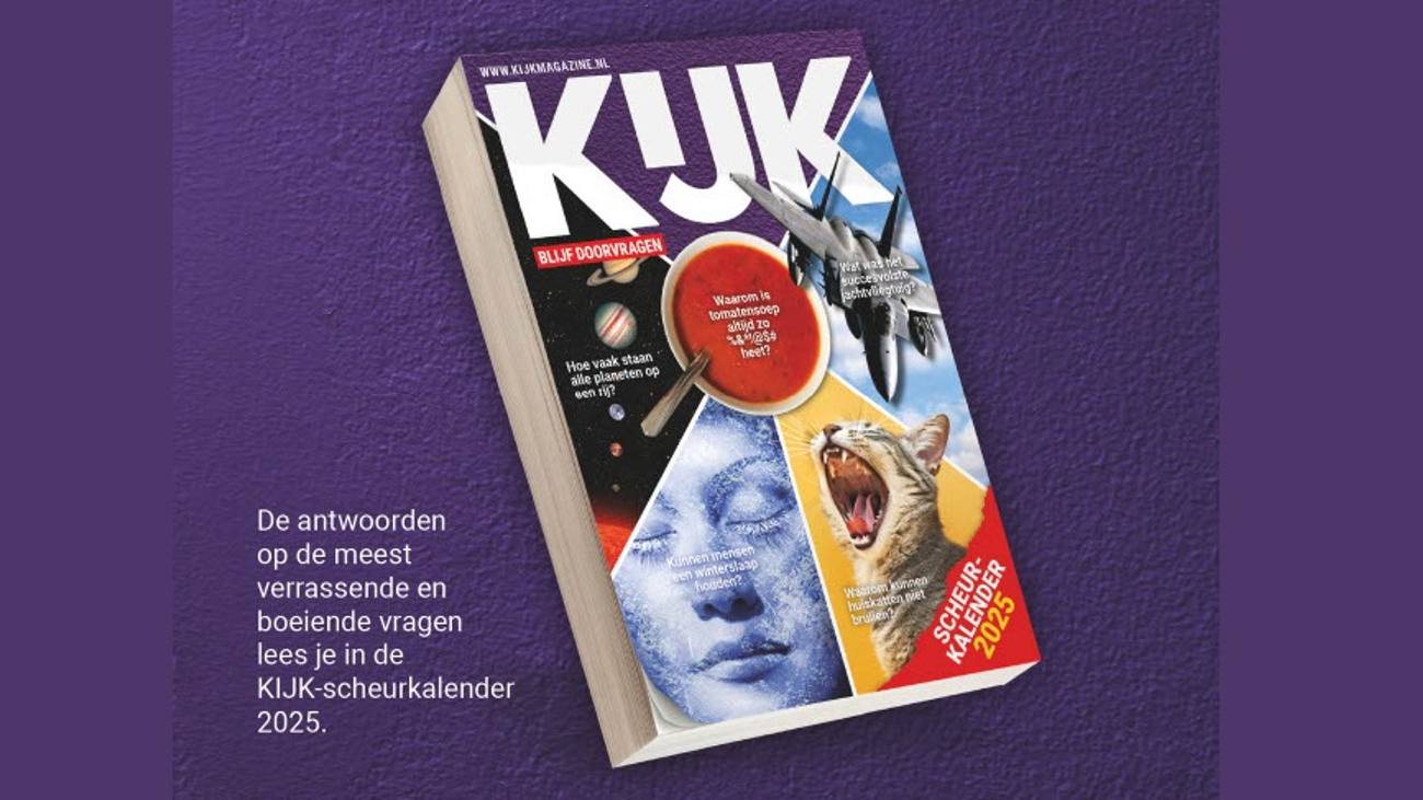 Hét magazine over baanbrekende wetenschap en vernieuwende technologie heeft ook dit jaar weer een scheurkalender uitgegeven, waarin dagelijks een prangende vraag wordt beantwoord. Want sinds wanneer houden we koffiepauze? Hoe komt de bitterbal eigenlijk aan zijn naam? En hoe communiceren stealthvliegtuigen? KIJK’s scheurkalender voor het jaar 2025 ligt vanaf nu in de schappen. Leuk om cadeau te geven of om zelf in huis te halen.