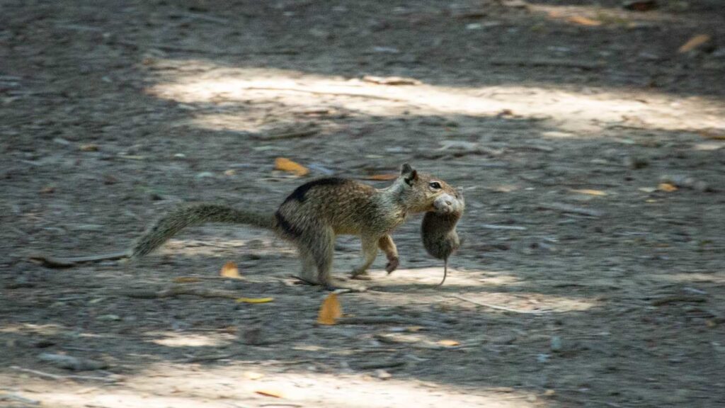 Eekhoorns staan er om bekend dat ze hun wangen volproppen met noten, zaden en granen. Maar biologen hebben nu ontdekt dat Californische grondeekhoorns ook graag een hapje vlees eten. Ze bleken deze zomer volop te jagen op woelmuizen. Het is de eerste keer dat ze deze knaagdieren dat actief hebben zien doen.