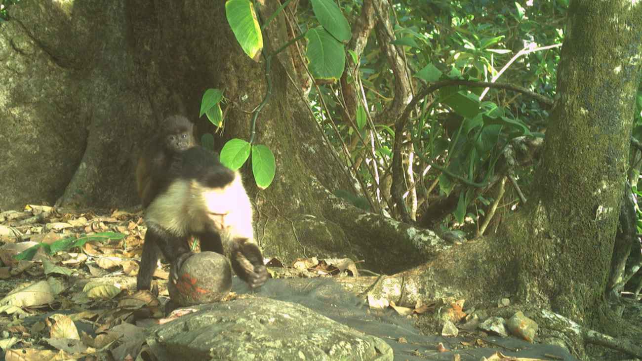 De onderzoekers hebben al sinds 2017 bewegingsgevoelige camera’s op het eiland Jicarón geplaatst, dat voor de kust van Panama ligt. Daar leeft een grote populatie kapucijnapen, waarvan ze graag het intelligente gereedschapsgebruik wilden bestuderen. Maar in 2022 zag een van de wetenschappers een wel heel ongewoon verschijnsel.