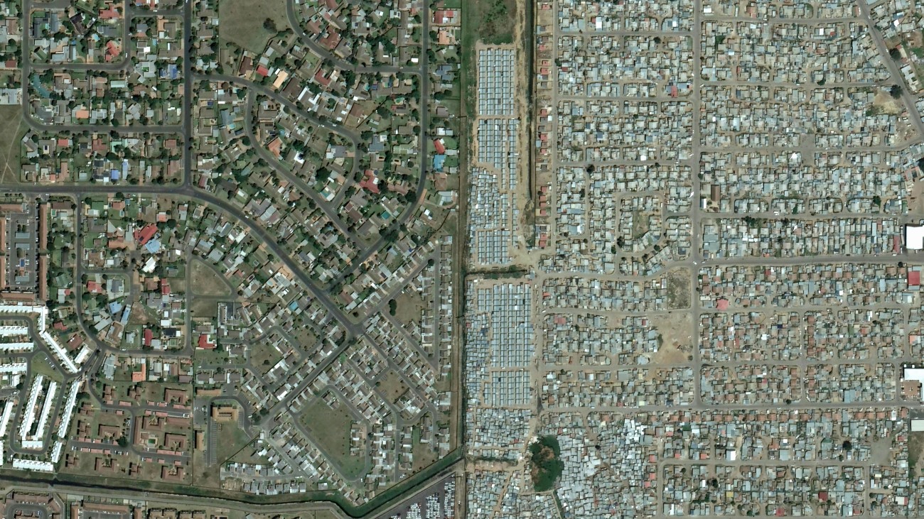 Iedere zondag vind je op onze website de mooiste en interessantste satellietfoto’s van de aarde. Deze week: sporen van de apartheid zijn nog steeds zichtbaar in Zuid-Afrika.