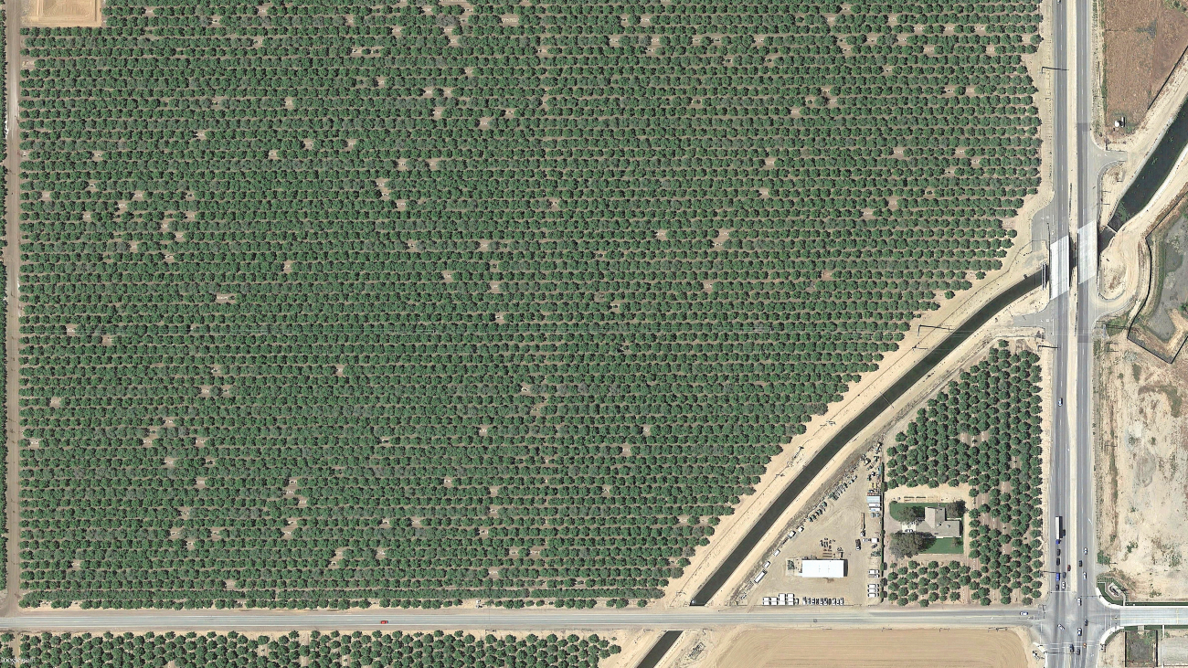 Dat gebied, Kern County, is dan ook de op drie na meest productieve regio in de VS (nou ja, in dollars dan). Er wordt van alles verbouwd: van druiven tot wortels, van amandelen tot katoen en van rozen tot grapefruits. De vijf tot zes meter hoge bomen waaraan die grapefruits groeien, zie je hier.