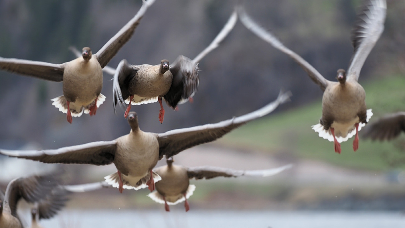Kleine rietganzen kunnen door menselijke verstoringen steeds minder makkelijk aan eten komen langs hun vliegroute naar het noordelijke Spitsbergen. In korte tijd hebben ze een andere broedplaats gevonden.