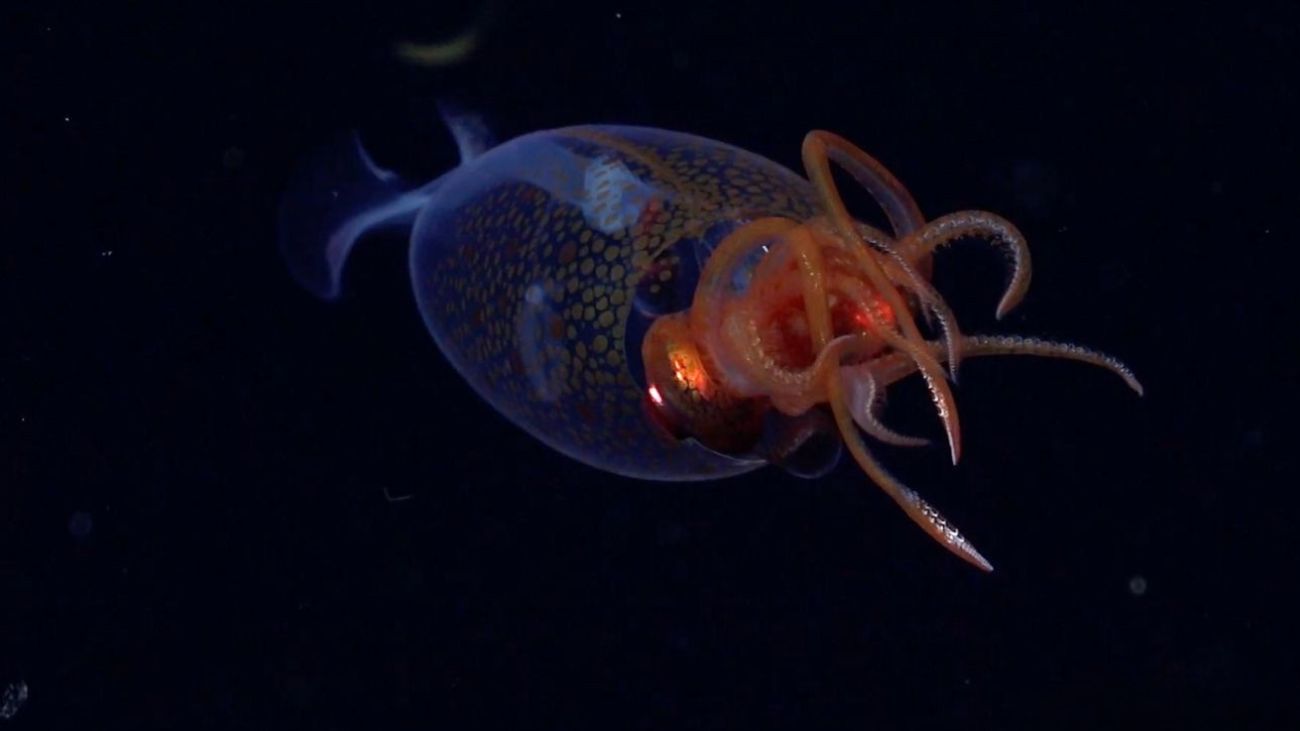 Het gaat om een pasgeboren exemplaar van slechts zo’n 30 centimeter. De inktvis had een doorzichtig lichaam, een eigenschap die bij volwassen dieren is verdwenen. Bekijk de beelden in de video hieronder.