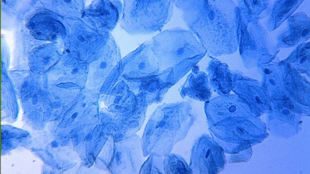 Beeld: Het molecuul Methyleen Blauw uit dit onderzoek wordt gebruikt als kleurstof, geneesmiddel en in medisch onderzoek – zoals hier om menselijke wangcellen te kleuren voor beter contrast in een microscoop. © Joseph Elsbernd, Wikipedia / Flickr