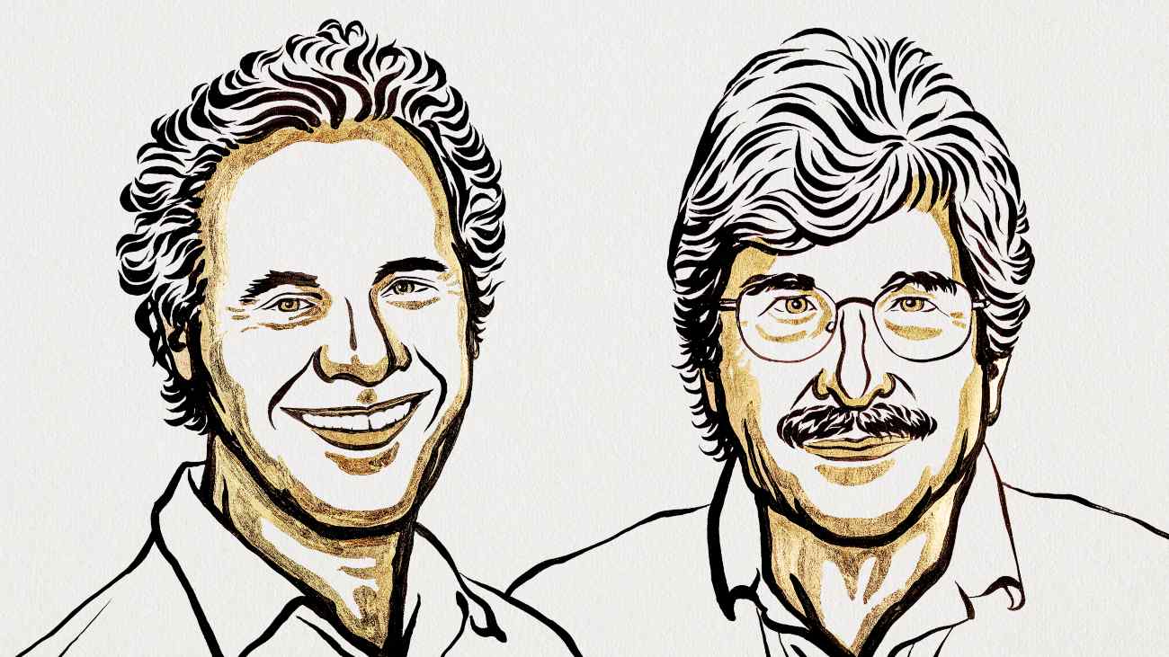 Victor Ambros (links) en Gary Ruvkun (rechts). Beeld: Ill. Niklas Elmehed © Nobel Prize Outreach.