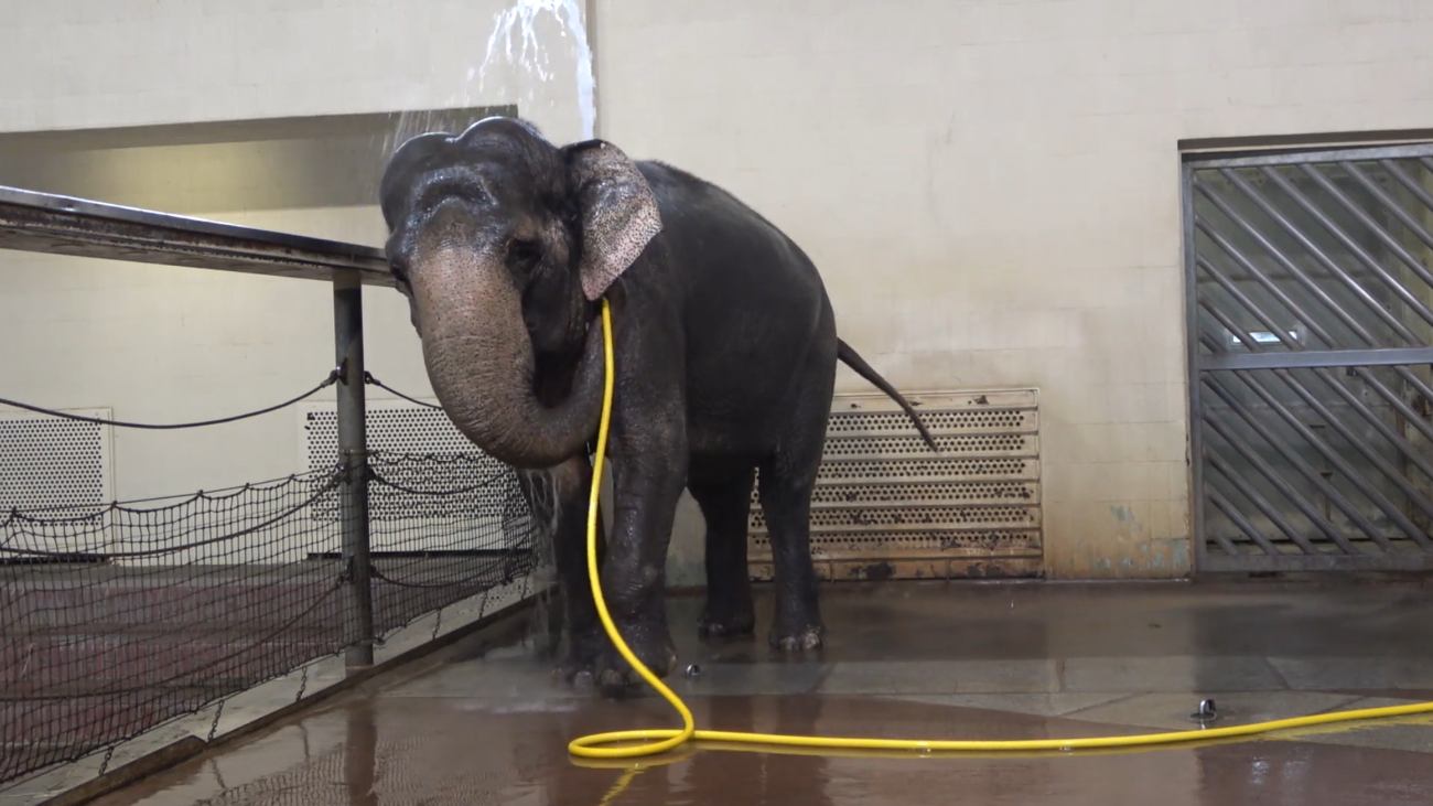 Bioloog Lena Kaufman en collega’s filmden een aantal douchbeurten van Mary en gingen stap voor stap na hoe de olifant daarbij de tuinslang inzette. Het vrouwtje bleek heel systematisch te werk te gaan. Ze begon met haar voorkant, waarbij ze de tuinslang met haar slurf vlak achter de opening vasthield en daardoor goed kon sturen.