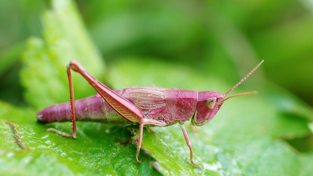 Het gaat hier om een weidesprinkhaan, die komt veel voor in het Verenigd Koninkrijk. Maar meestal is het insect groen, bruin of een combinatie van de twee. In zeldzame gevallen zorgt een genetische mutatie er echter voor dat ze roze kleuren.