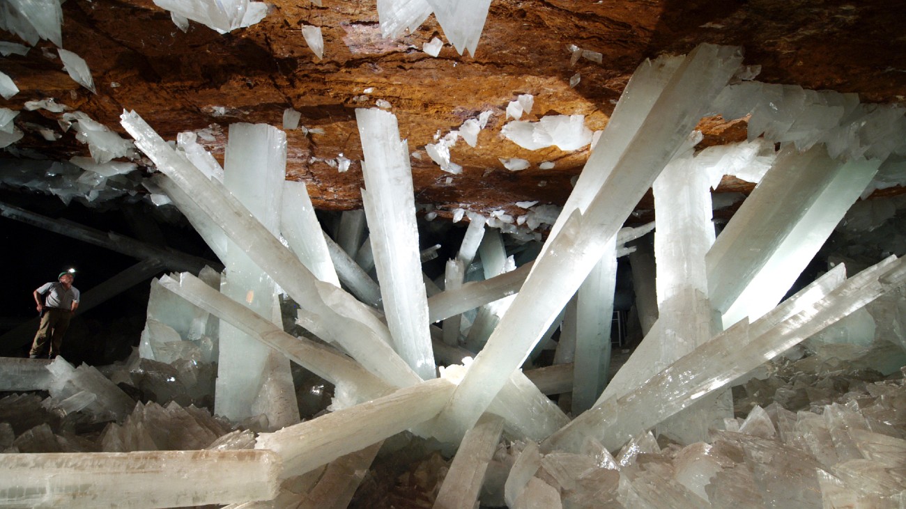 De Mexicaanse deelstaat Chihuahua heeft een geologisch wereldwonder. In de Naica-mijn bevindt zich namelijk een heel bijzondere grot: de Cueva de Los Cristales. Zoals de naam al doet vermoeden, is deze 300 meter diepe holte gevuld met gipskristallen, ook wel seleniet genoemd. Sommige exemplaren zijn maar liefst 15 meter hoog en 1 meter dik. De enorme kristalformaties ontstaan in heet, mineraalrijk water dat uit vulkanische bronnen in de aardkorst omhoog borrelt.