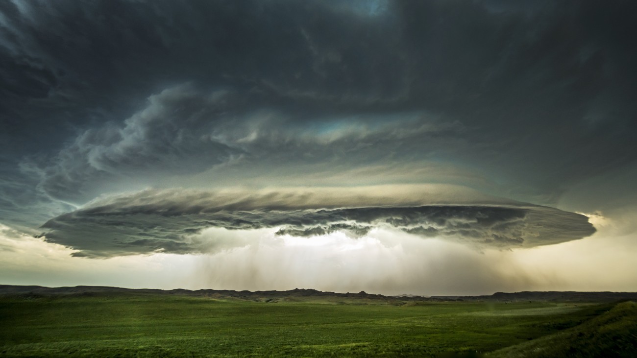 Donkere wolken pakken zich samen boven een grasvlakte bij de plaats Circle, in de staat Montana. En daardoor lijkt het alsof er een enorme ufo nadert die onze aardbol inspecteert. Als je zo’n angstaanjagende supercelwolk aan de hemel ziet, kun je – nadat je snel een vette foto hebt gemaakt – beter ergens gaan schuilen.