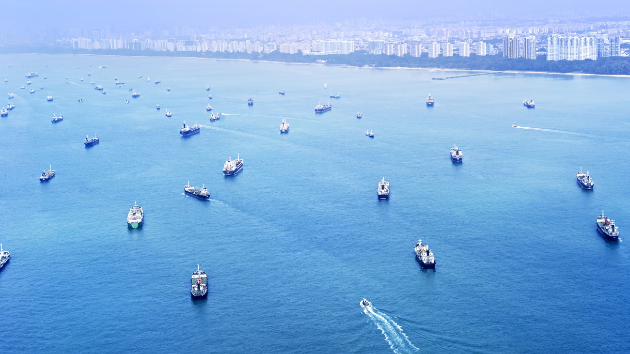 Maar er is een elegante en simpele manier om aardig in de buurt van het goede antwoord te komen. De oppervlakte van de wereldzeeën en oceanen is 361 miljoen km2. Laten we in gedachten alle schepen van de wereldkoopvaardijvloot eens hutjemutje tegen elkaar aan leggen. Hoeveel vierkante kilometer hebben we dan nodig?