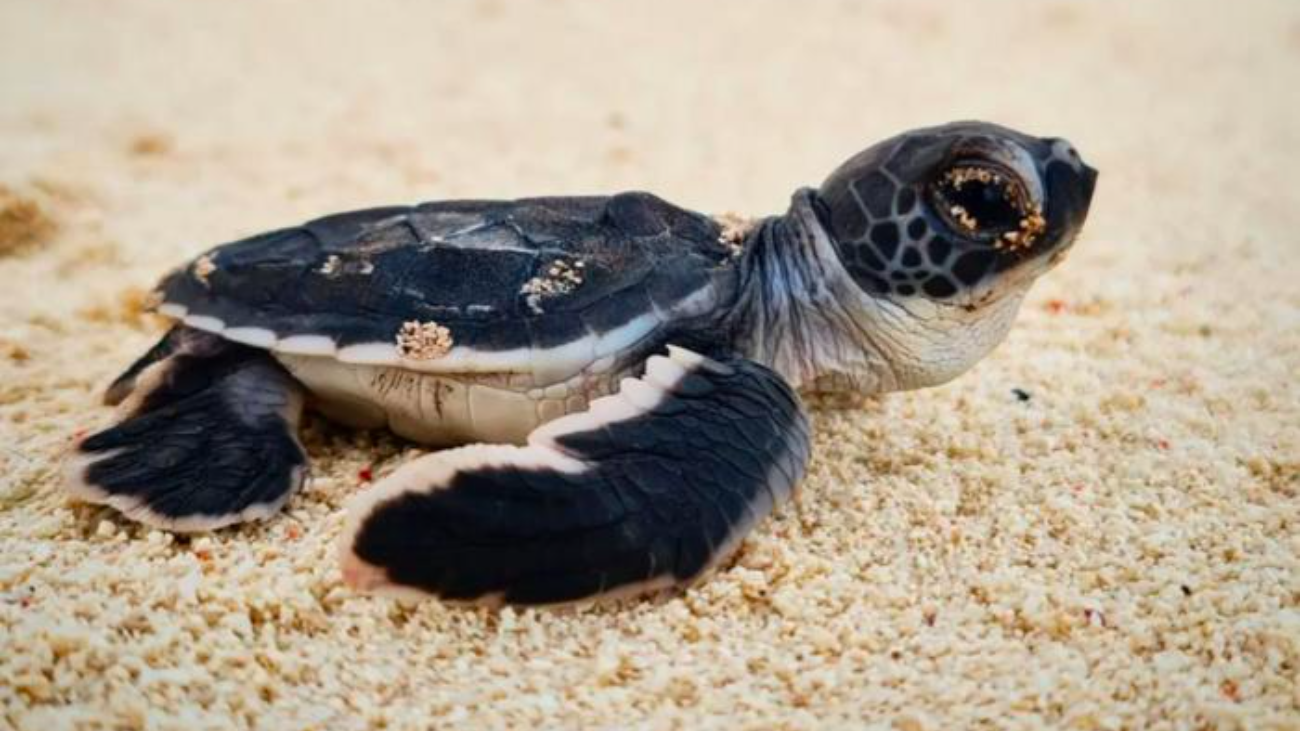 Het leven van zeeschildpadden begint direct hectisch. Nadat ze uit hun ei komen, begeven ze zich zo’n 30 tot 80 centimeter onder de grond en moeten ze een weg omhoog graven. Het vermoeden bestaat dat ze daar drie tot zeven dagen over doen. Na deze race tegen de klok leggen ze een gevaarlijke weg af over het strand om uiteindelijk in de zee te duiken.