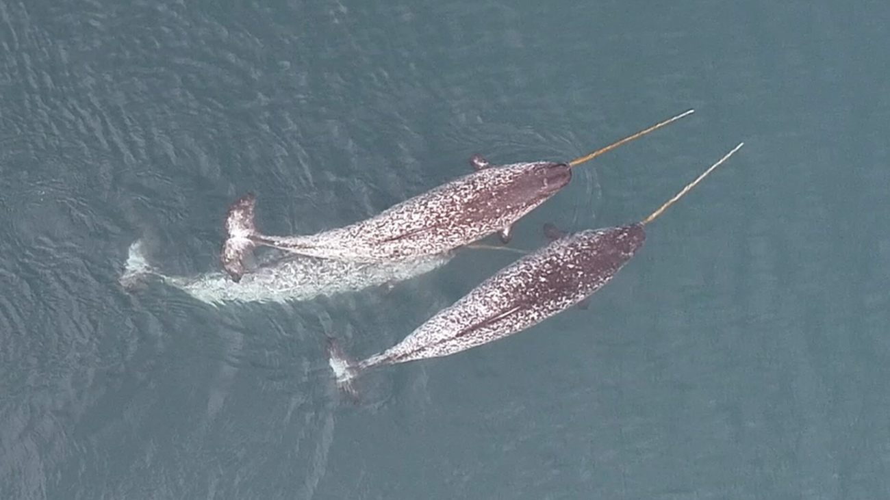 Dronebeelden onthullen een nieuwe functie van de narwalslagtand en laten zien hoe een bepaalde vogel het eten van de tandwalvissen steelt.