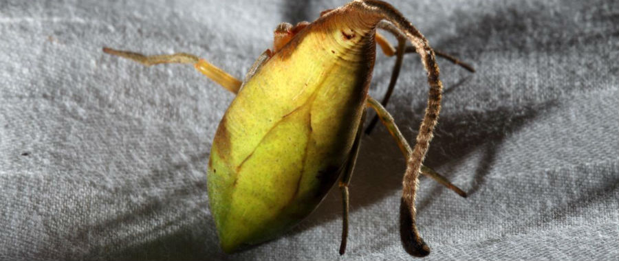Camouflage ten top: deze spin is nauwelijks te onderscheiden van het blad van een boom.