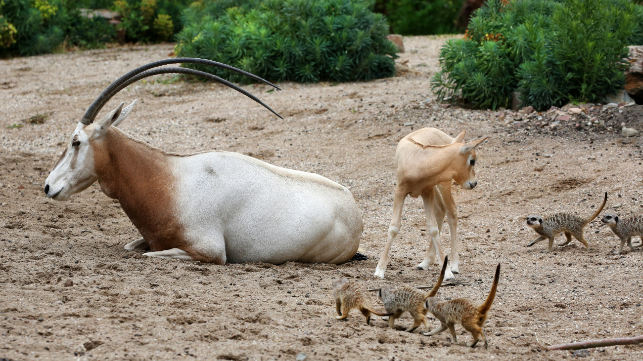 Dierverzorger Danny Sopjes: “Het zijn twee geitjes en de jongste loopt sinds deze week nu ook samen met de moedergeit bij de kudde. Beide lammeren troffen we kort na hun geboorte al volledig droog en schoongelikt aan, wat een goed teken is van de binding tussen de moeders en hun jongen. Terwijl zij nog wat onwennig op hun poten probeerden te gaan staan, verzamelden de stokstaartjes zich al snel nieuwsgierig en onderzoekend rondom de jonge algazellen. De lammeren verbleven een poosje apart van de kudde om uit te rusten en de moeder-jong band te versterken. Aan het oudste lam, dat nu vier weken is, kun je goed zien hoe snel ze groeien en sterker worden. De jongen zijn na ongeveer 14 weken zelfstandig en niet meer afhankelijk van hun moeder.”