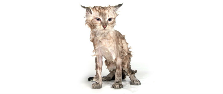 Bij de meeste dieren zijn de haren door de huideigen oliën een beetje vettig. Maar bij katten niet. Doordat ze zo ijdel zijn en zichzelf zo vaak schoonlikken, krijgen ze behoorlijk vetvrije haren, en die absorberen water. Daarom ziet een natte kat er ook zo ‘verzopen’ uit.