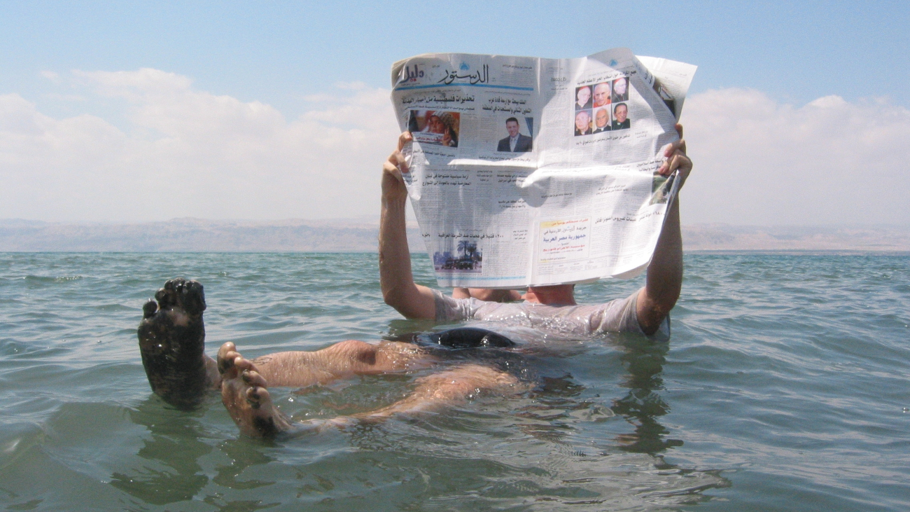 Het zoutgehalte van de Dode Zee is zo hoog dat een mens als een rubberbootje op het water blijft drijven. Hoe komt dat?
