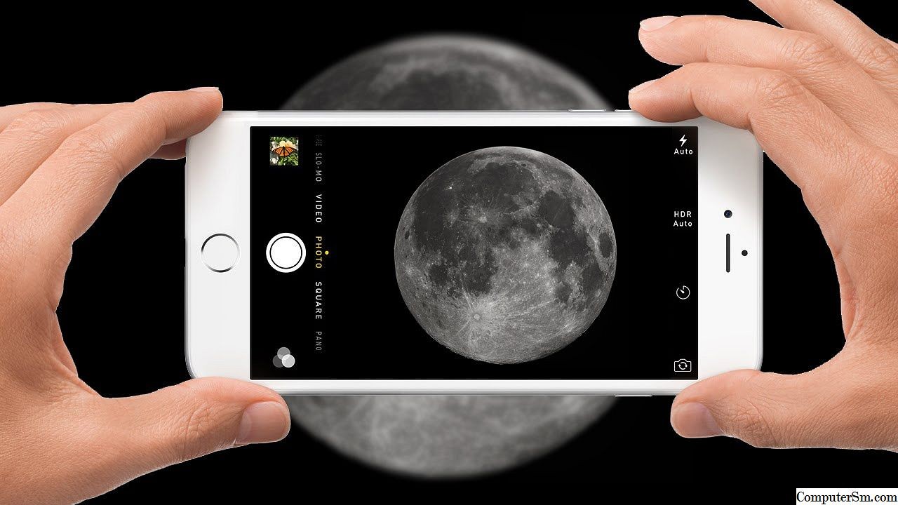 Inderdaad valt de grootte van de maan altijd tegen op foto’s. We hebben het dan wel over een ‘gewone’ foto waarbij we niet hebben ingezoomd. De grootte van de maan op de foto hangt namelijk af van het ‘blikveld’ van de camera, en dat is bijvoorbeeld bij een iPhone ongeveer 60 graden.