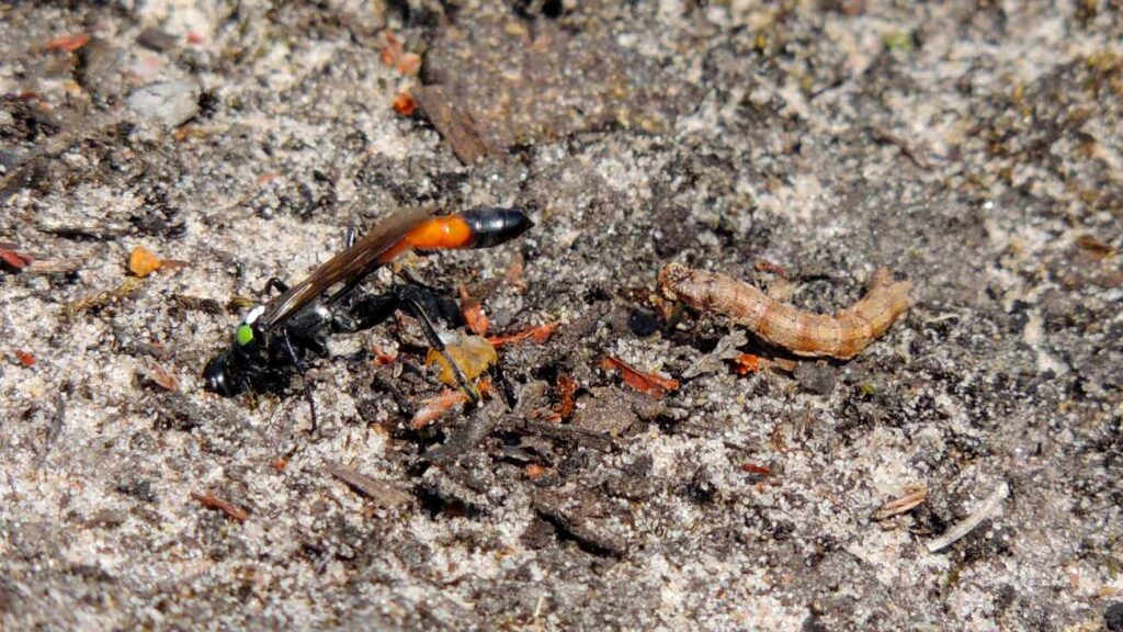 De onderzochte graafwespen komen voor op de heidevelden in Surrey, Engeland. Op de heideplanten zitten vaak veel rupsen – de prooi van de wesp. De wespen hebben een specifieke tactiek om hun nakomelingen groot te brengen. Eerst maakt een wespenmoeder een klein holletje in het zand en gaat vervolgens jagen op rupsen. Ze verlamt een rups met een steek en legt deze in het holletje. Daarbovenop legt ze een eitje, en ze dicht het holletje met wat zand voor bescherming. Als de larve uitkomt, kan die zich voeden met de rups.
