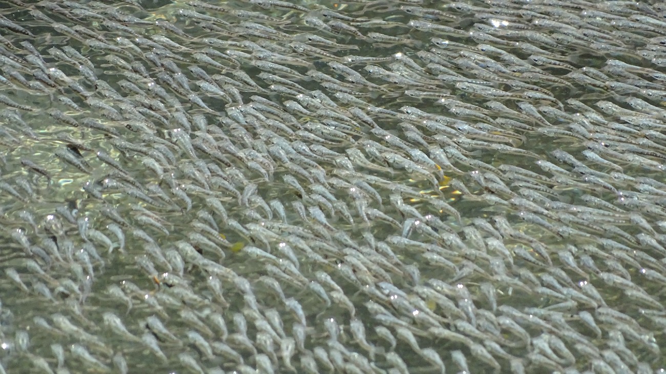 Als er een roofvogel komt aangevlogen, schieten de vissen als respons meteen het diepere, zuurstofarme water in. Maar al snel komen ze weer naar boven gezwommen: om adem te halen. Tudorache: “Als ze dat steeds doen, veroorzaken de vissen een golfbeweging.” Dit doen de vissen met honderdduizenden tegelijk, waarbij ze allemaal elkaars gedrag overnemen.