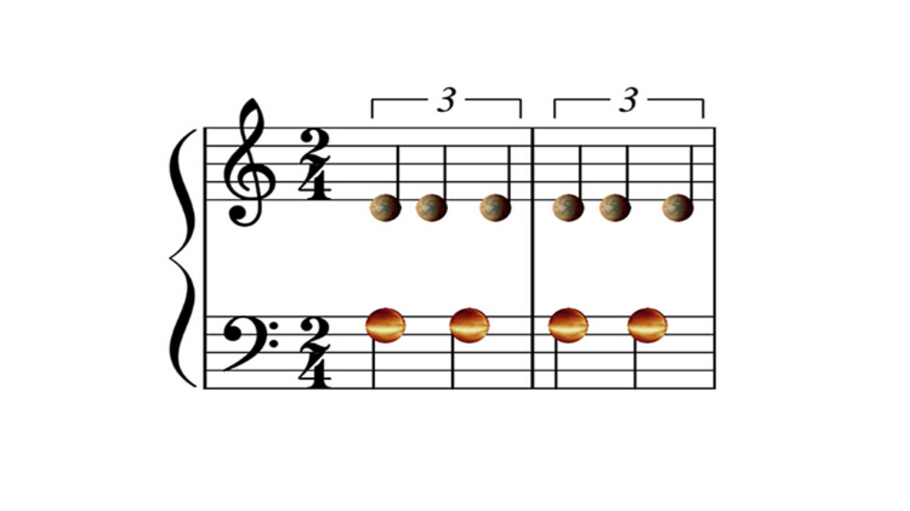 Voor elke drie rondjes die de ene planeet rond hun zon draait, draait zijn directe buur er twee. Ritme op astronomische schaal.