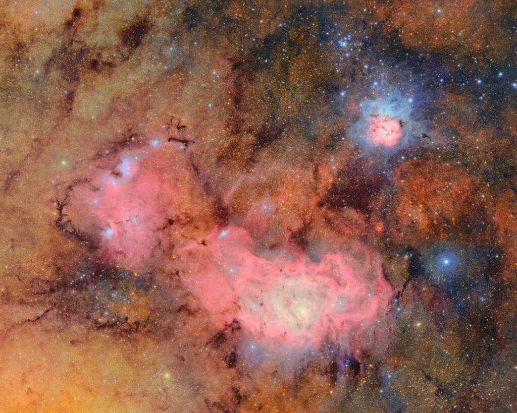 Het Rubin-team heeft ook een mozaïek onthuld van de Trifidnevel en de Lagunenevel, twee gaswolken in het Melkwegstelsel waar veel sterren worden geboren. Hoewel er al gedetailleerdere foto’s zijn van deze nevels, waren die van slechts een klein gebied. Op deze mozaïek, samengesteld uit 678 beelden, zijn ze in hun geheel zichtbaar – en alsnog erg gedetailleerd.