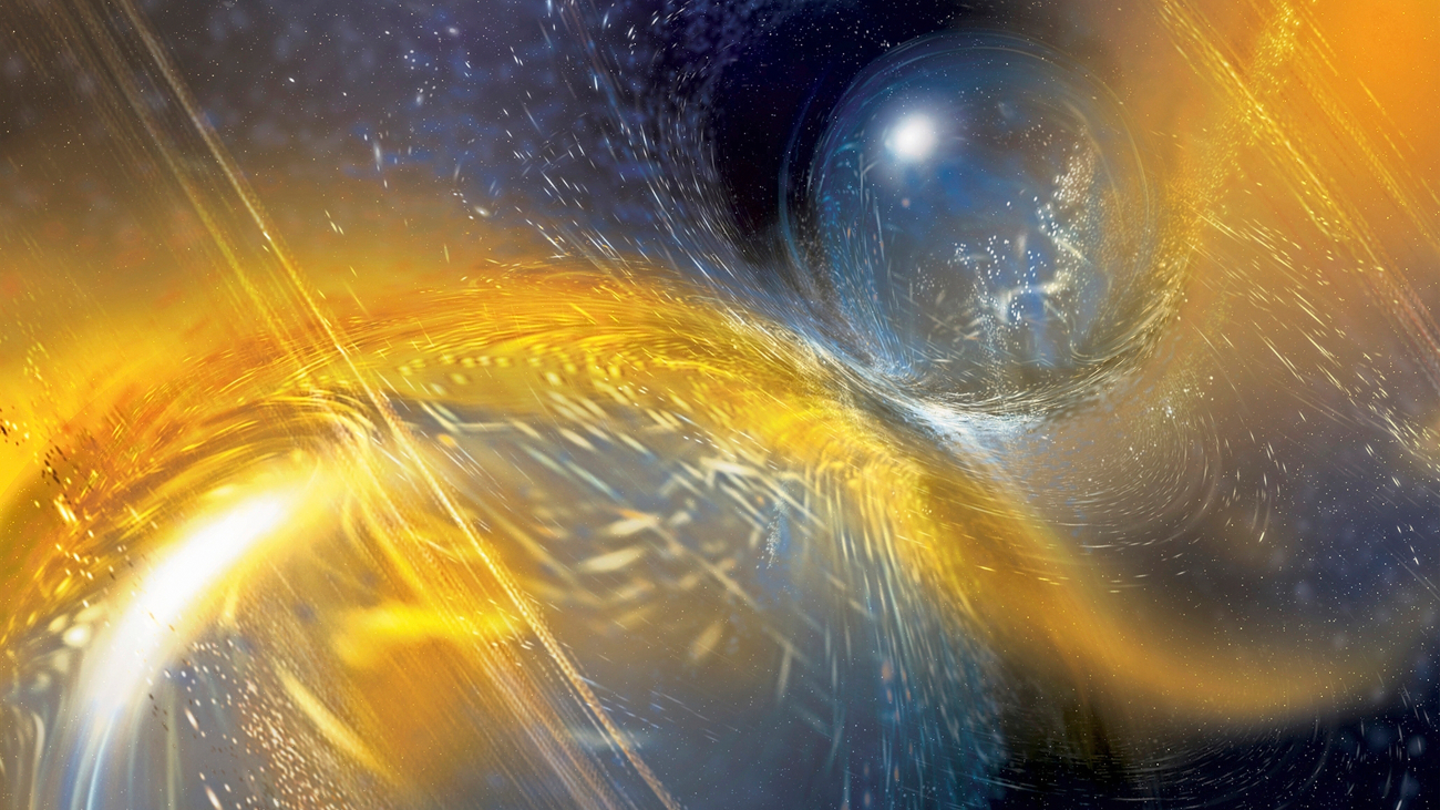 Dat is zo ongeveer de situatie waar astronomen zich momenteel in bevinden. Ze ‘zien’, dankzij een breed scala aan telescopen op aarde en in de ruimte, elektromagnetische straling – waar zichtbaar licht maar een klein deel van uitmaakt – met alle denkbare frequenties. Daarnaast hebben ze sinds enkele jaren een tweede manier om het universum mee waar te nemen: zwaartekrachtgolven. Maar daarvan ontgaat het leeuwendeel ons.