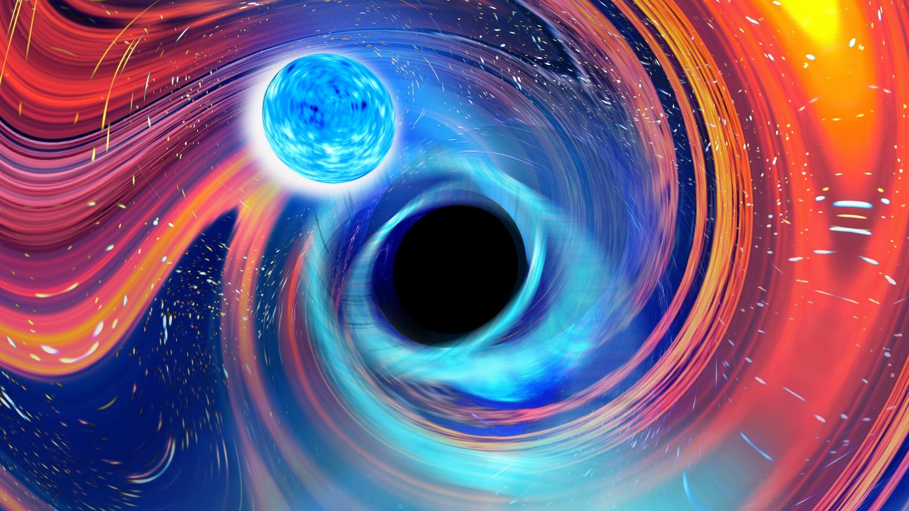 In het vakblad Astrophysical Journal Letters presenteren de twee gravitatiegolfdetectoren LIGO en Virgo op dinsdag de eerste waarnemingen van een botsend zwart gat met een neutronenster. “Dankzij deze metingen leren we hoe zulke gemengde systemen ontstaan”, zegt hoogleraar natuurkunde Chris van den Broeck (Nikhef en Universiteit Utrecht).