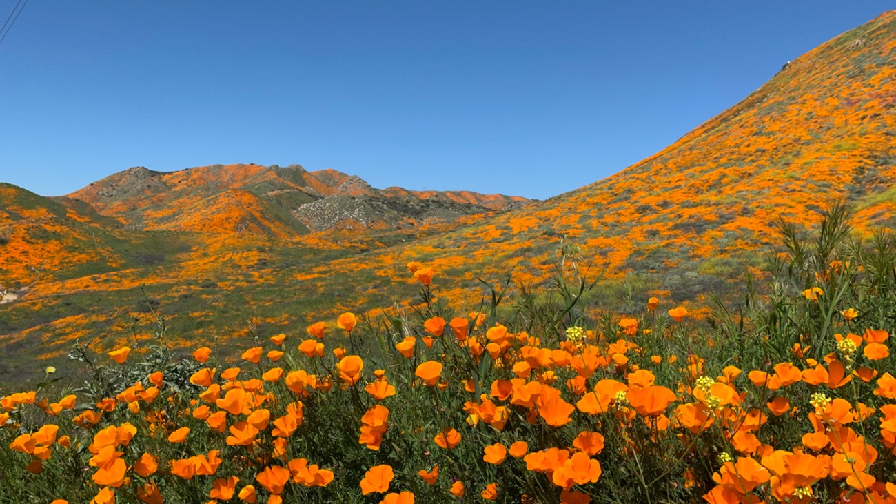 Ja, de tulpenvelden in Lisse zijn prachtig. Maar ze vallen wel een beetje in het niet bij de bloeiende landschappen van het Antelope Valley Poppy Reserve in Zuid-Californië. Miljoenen oranje klaprozen floreren daar nadat ze in maart en april een flinke plens regen hebben kregen. Die superbloom, zoals de Amerikanen het jaarlijks terugkerende fenomeen noemen, hebben de satellieten van NASA’s Space Observatory vastgelegd.