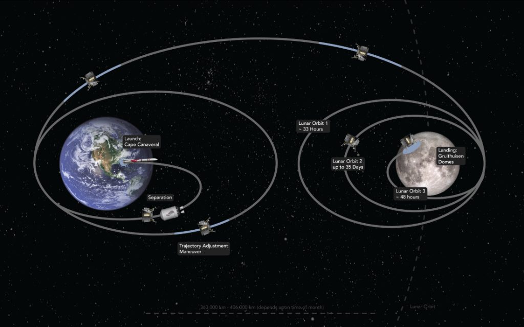 Kort nadat de maanlander was losgekoppeld van de 62 meter hoge lanceerraket stuurde hij een teken van leven naar de missieleiders. Peregrine zal nu eerst in een elliptische baan rond de aarde draaien voordat hij daadwerkelijk naar de maan reist. Eenmaal bij de maan zal hij daar ook eerst nog drie rondjes om de natuurlijke satelliet heen draaien om uiteindelijk – naar verwachting – op 23 februari te landen.