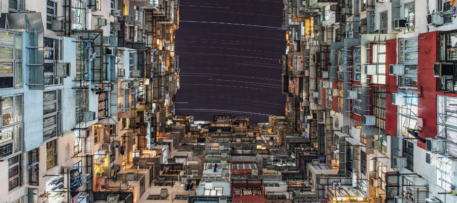 Hongkong is niet de beste plek ter wereld om naar de sterren te kijken; daar zorgt de hoeveelheid verlichting in de stad wel voor. Toch kun je er een prijswinnende foto schieten (categorie ‘mensen en de ruimte’), zo bewees Wing Ka Ho – als je de sluitertijd maar lang genoeg maakt.