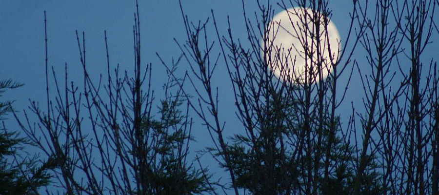 Zie de supermaan schijnt door de bomen. Makkers staakt uw wild geraas. Dit (Sinterklaas)weekend is de enige supermaan van dit jaar te zien!